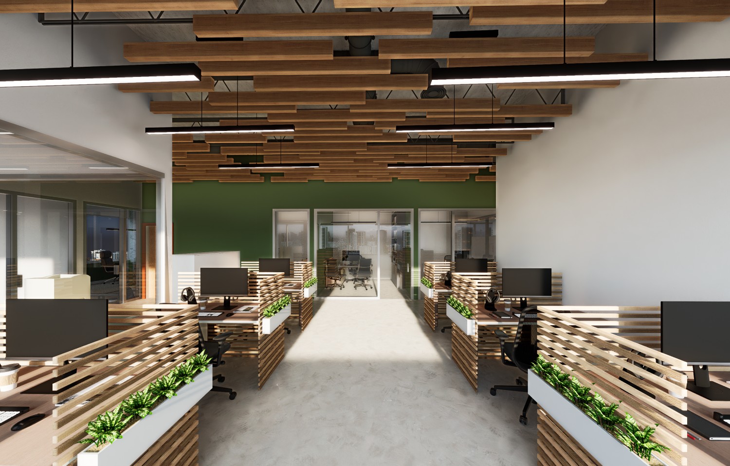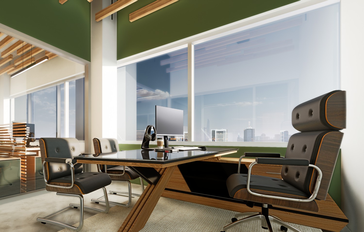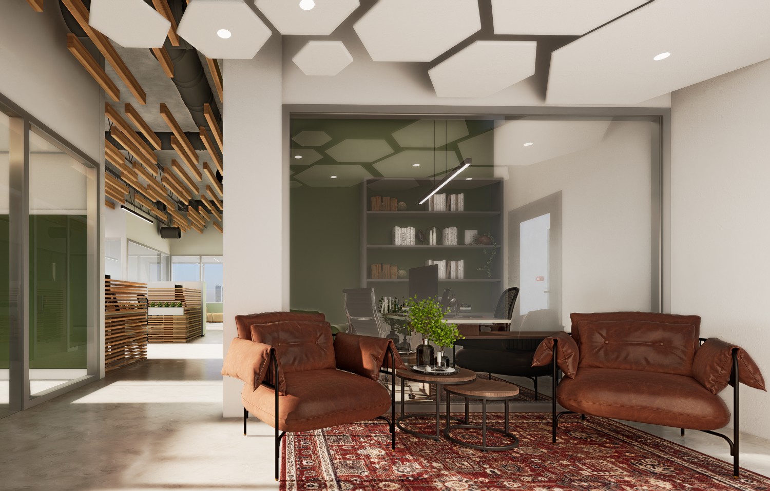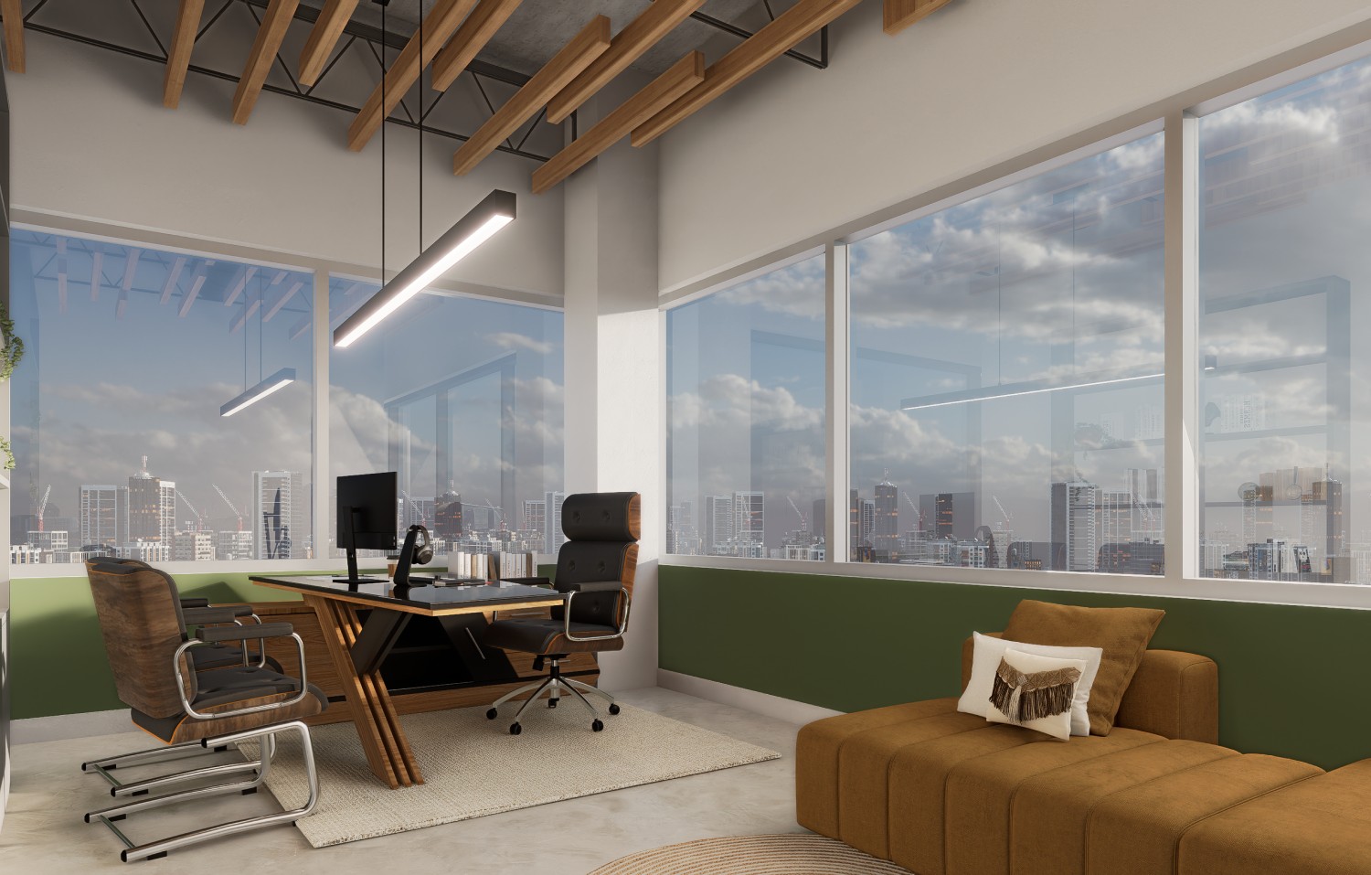 Our design approach centers on creating a contemporary aesthetic infused with warmth and comfort. We've carefully curated a palette of soft, inviting tones that complement the rich, natural textures of wood, creating a harmonious balance between sleek modernity and organic warmth. The result is a refined space that promotes productivity and collaboration while offering a serene and welcoming atmosphere for employees and visitors alike. This renovation transforms a conventional office unit into a distinctive and inspiring hub for innovation and well-being.